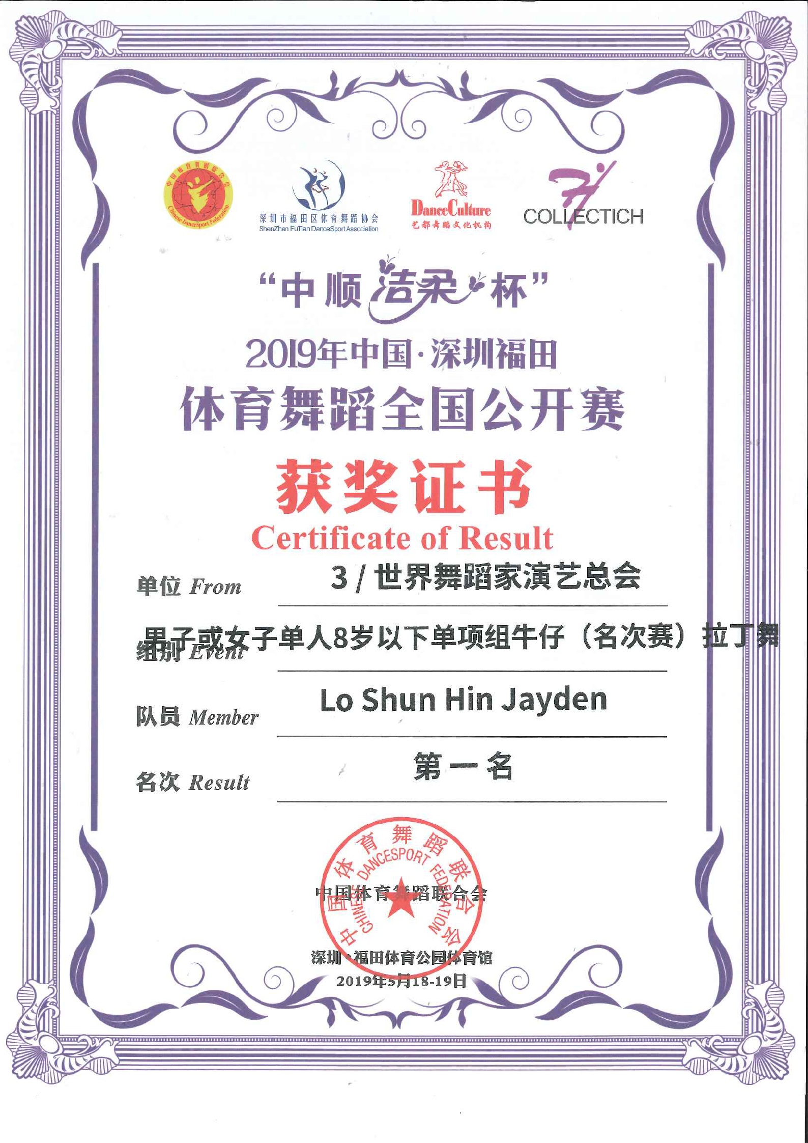 中順潔柔杯 2019年中國深圳福田體育舞蹈全國公開賽