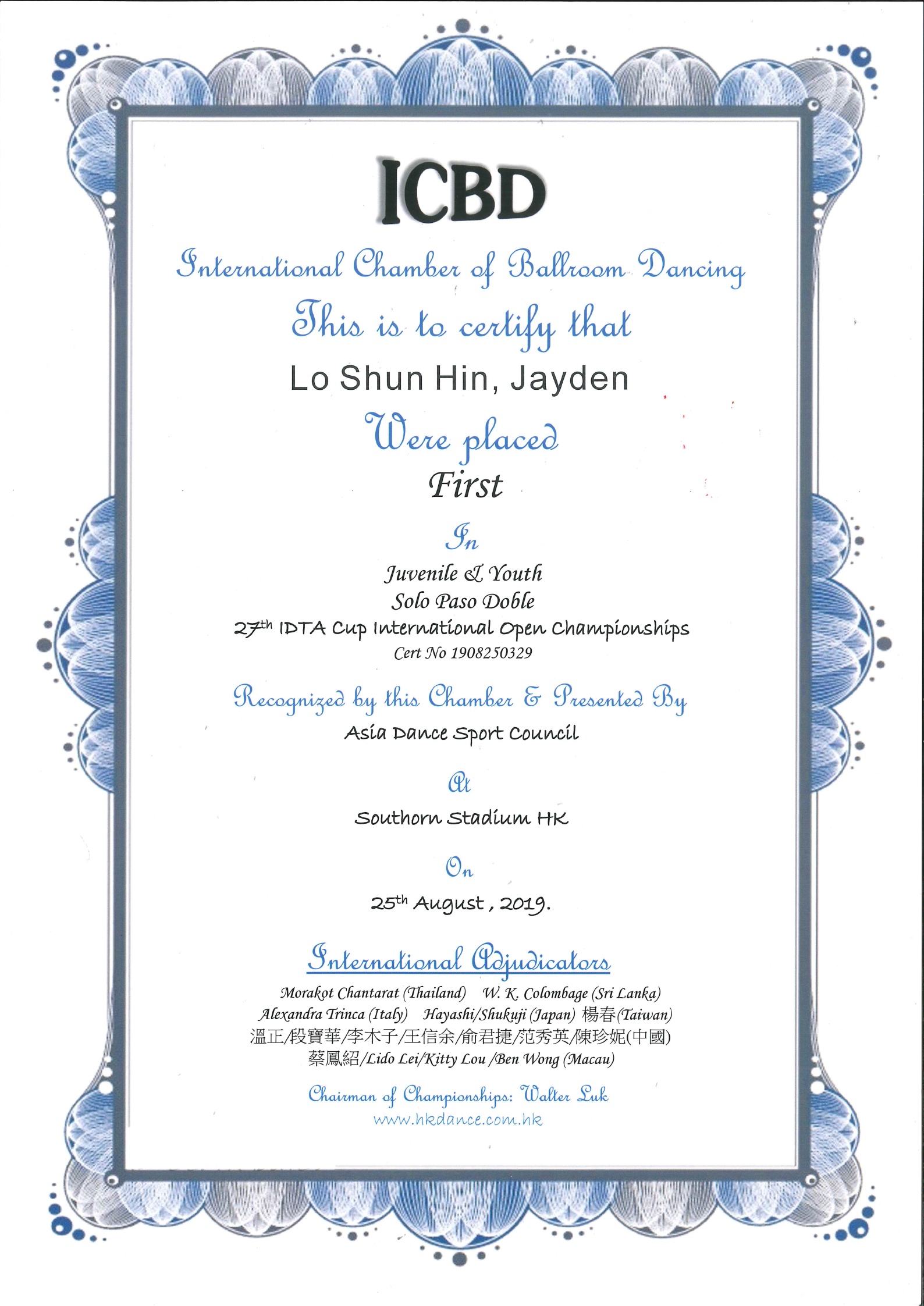 27TH IDTA CUP INTERNATIONAL OPEN CHAMPIONSHIPS