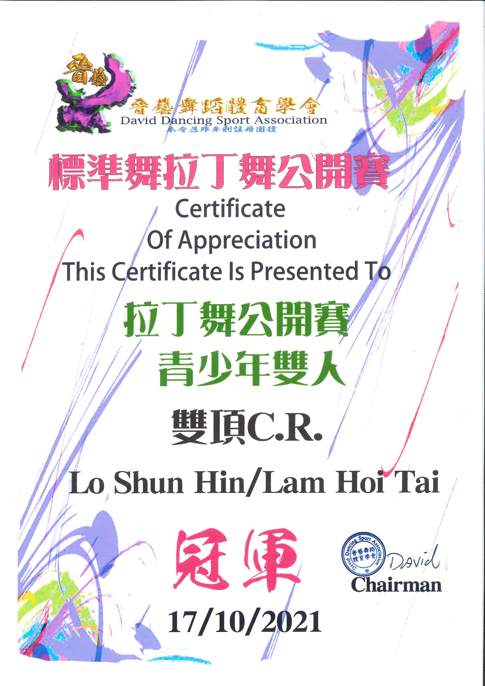晉藝舞蹈體育學會 2021標準舞及拉丁舞大賽