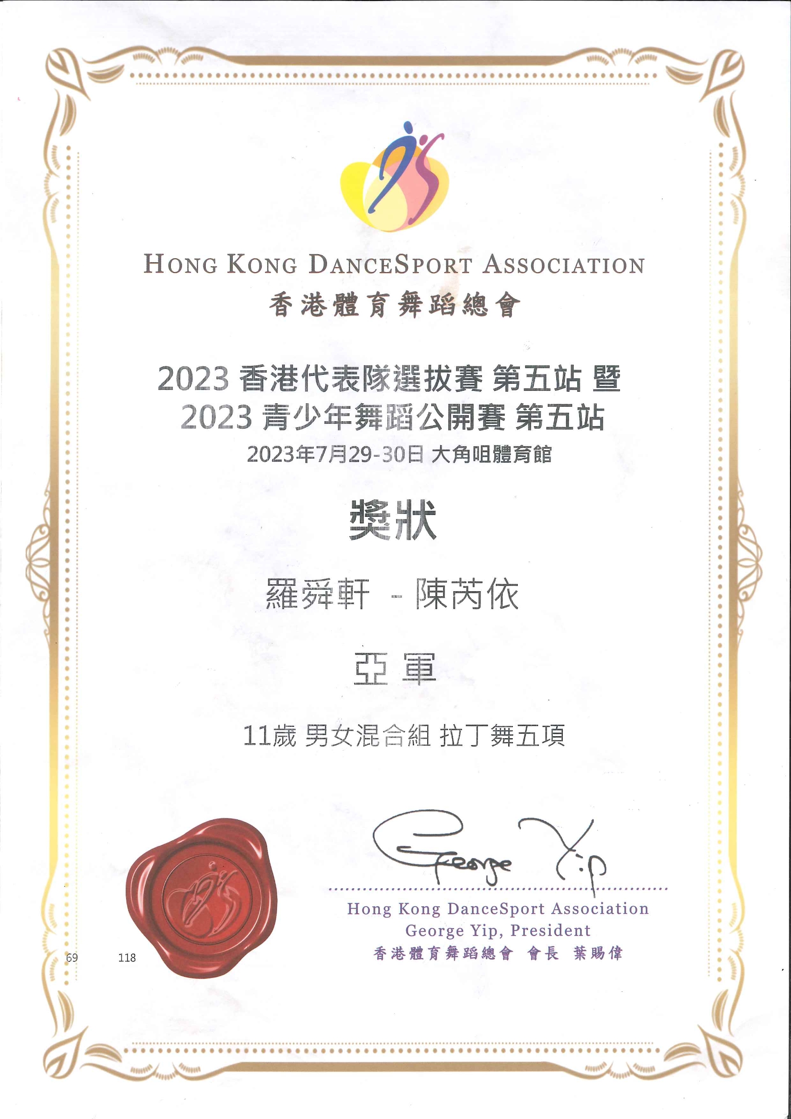 11歲 男女混合組 拉丁舞五項