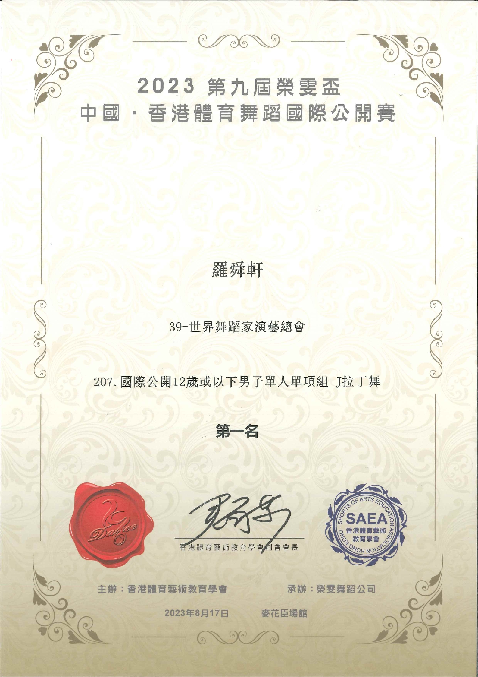 2023榮雯盃 中國•香港第九屆體育舞蹈國際公開賽