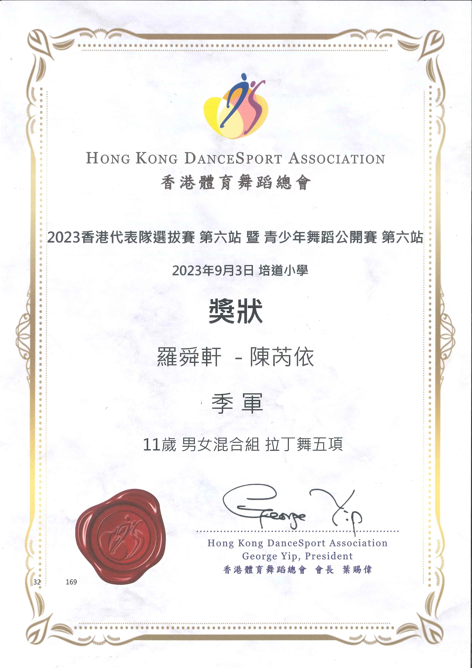 11歲男女混合組拉丁舞五項