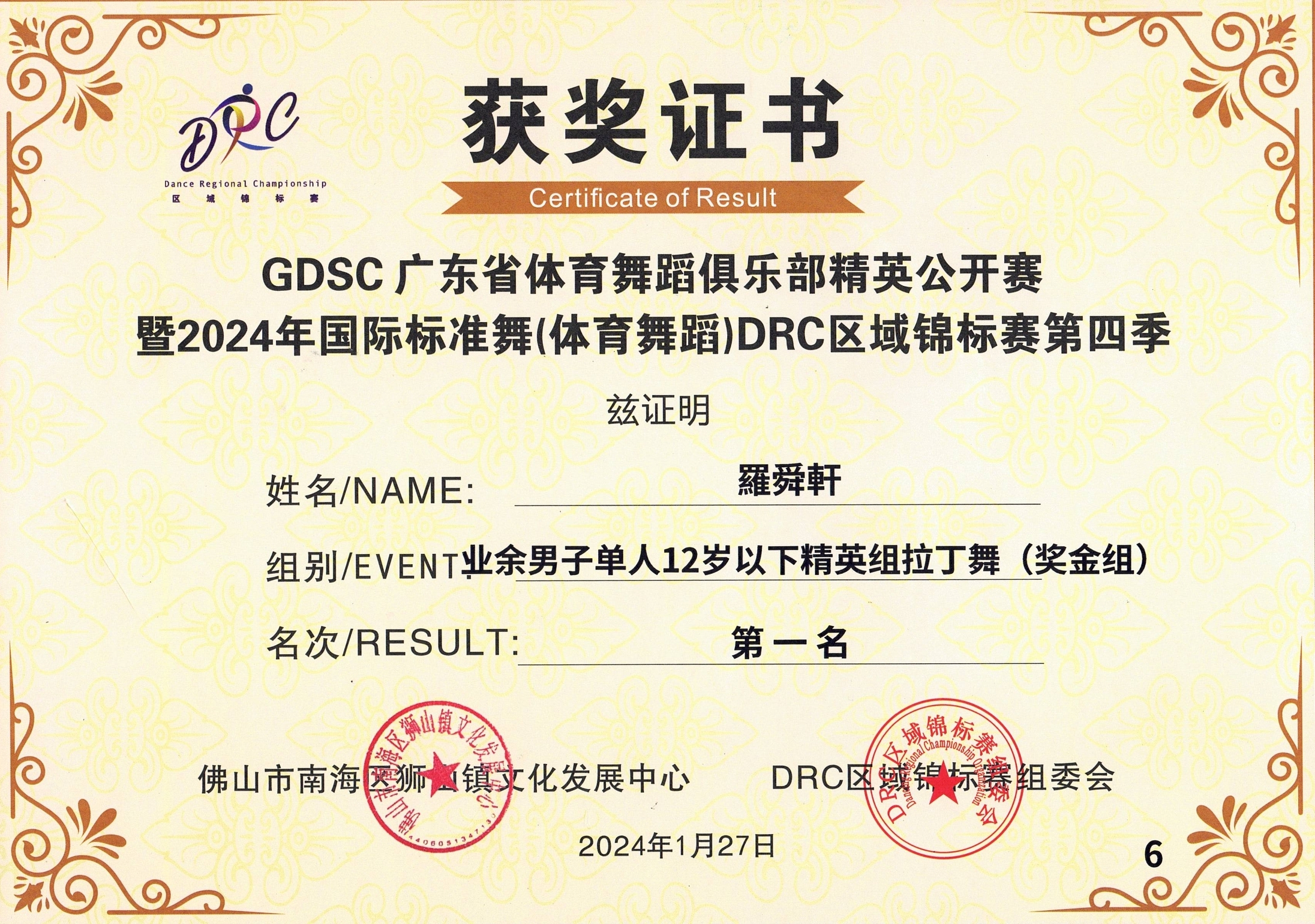 业余男子单人12岁以下精英组拉丁舞 CRJ (奖金组)