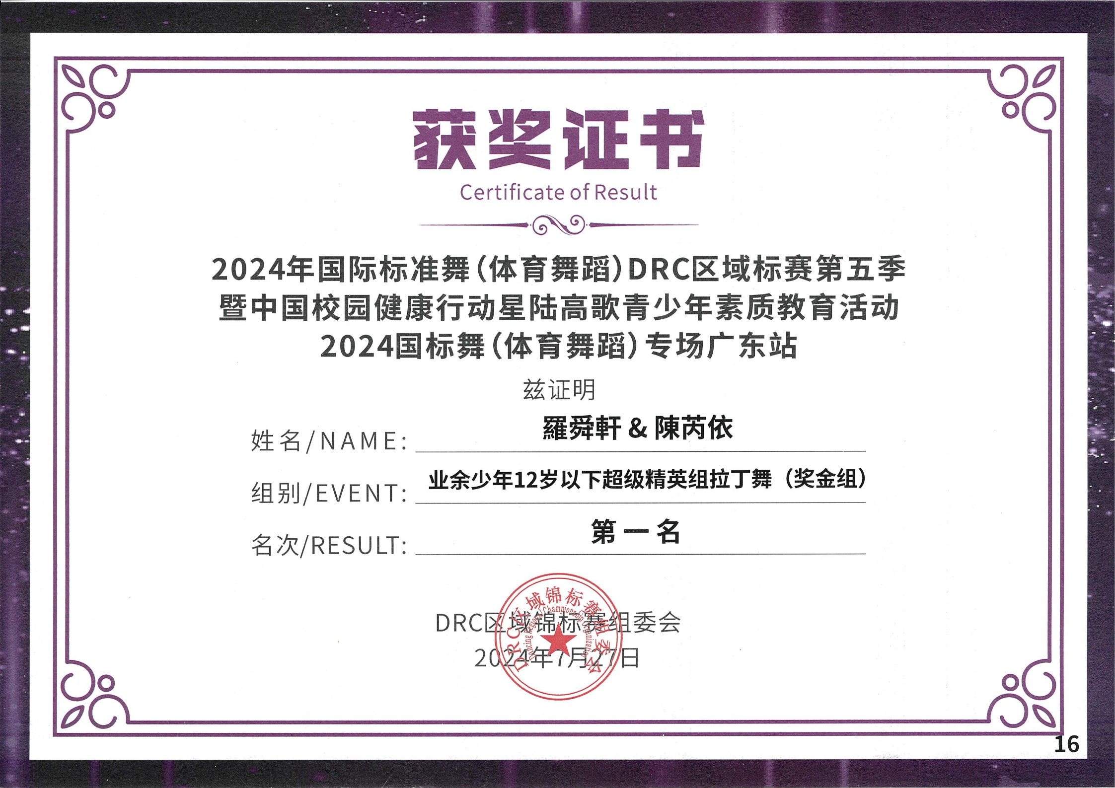 業餘少年12歲以下超級精英組拉丁舞 (獎金組)