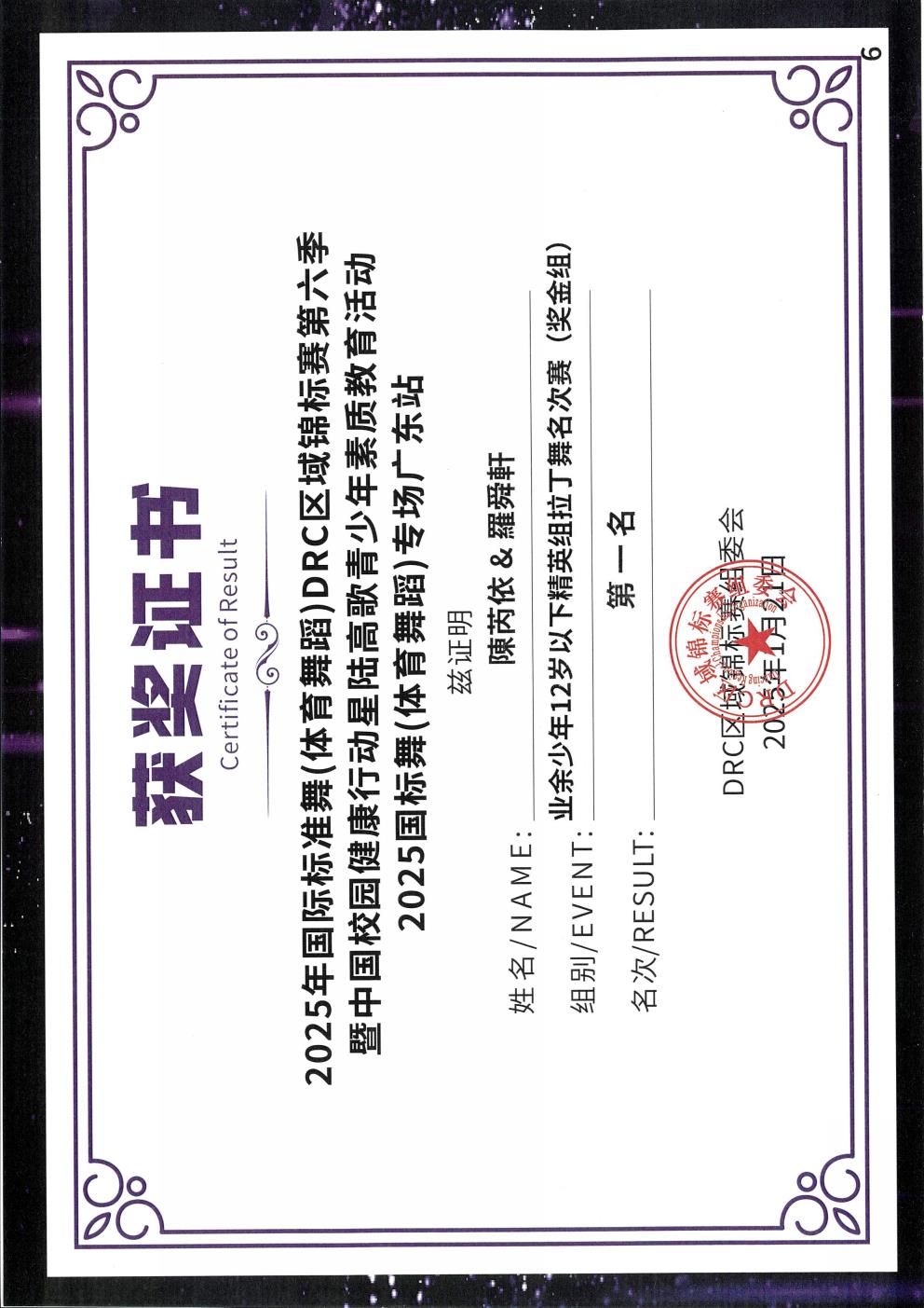 2025年國際標準舞(體育舞蹈)DRC區域錦標賽第六季