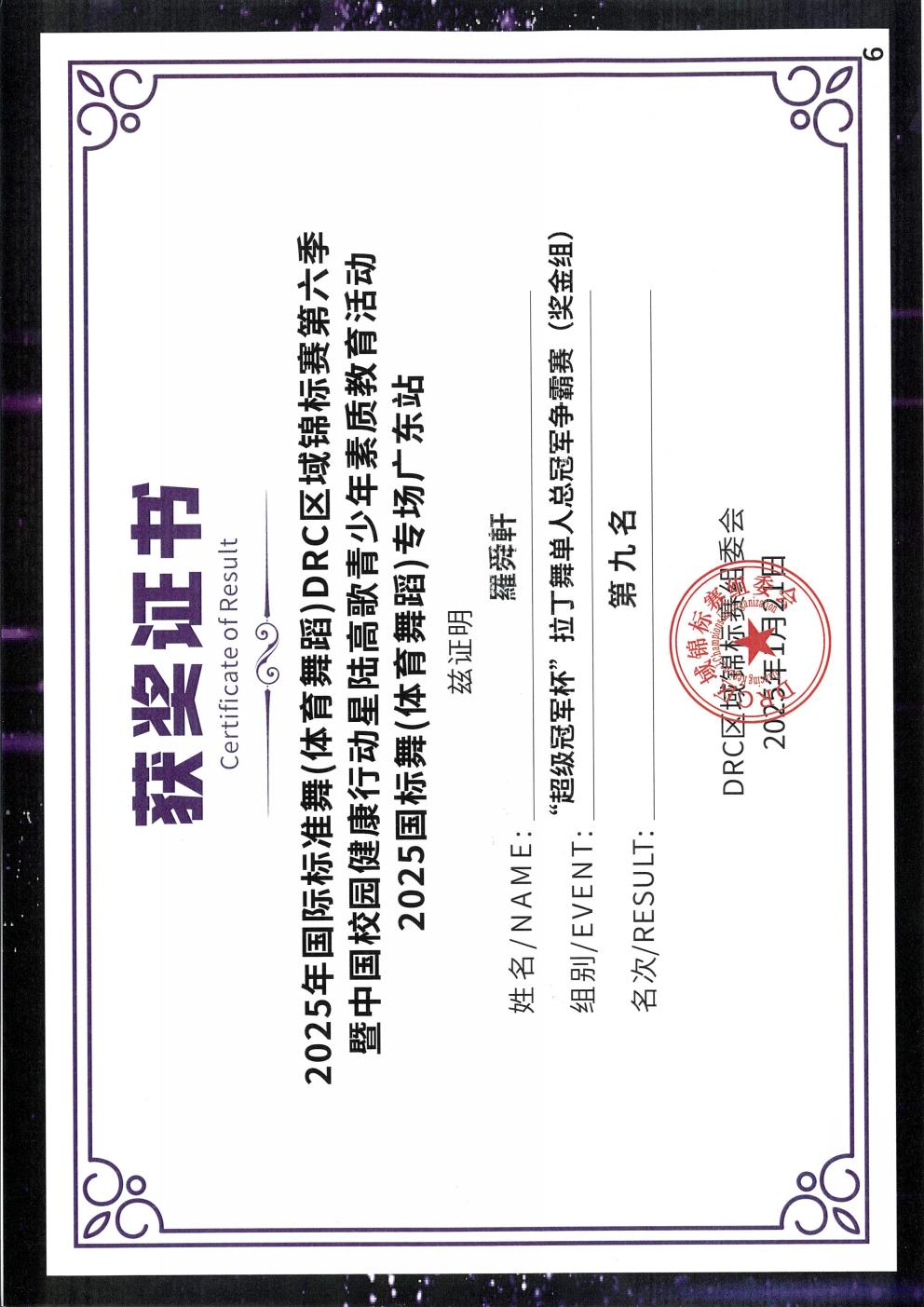 2025年國際標準舞(體育舞蹈)DRC區域錦標賽第六季