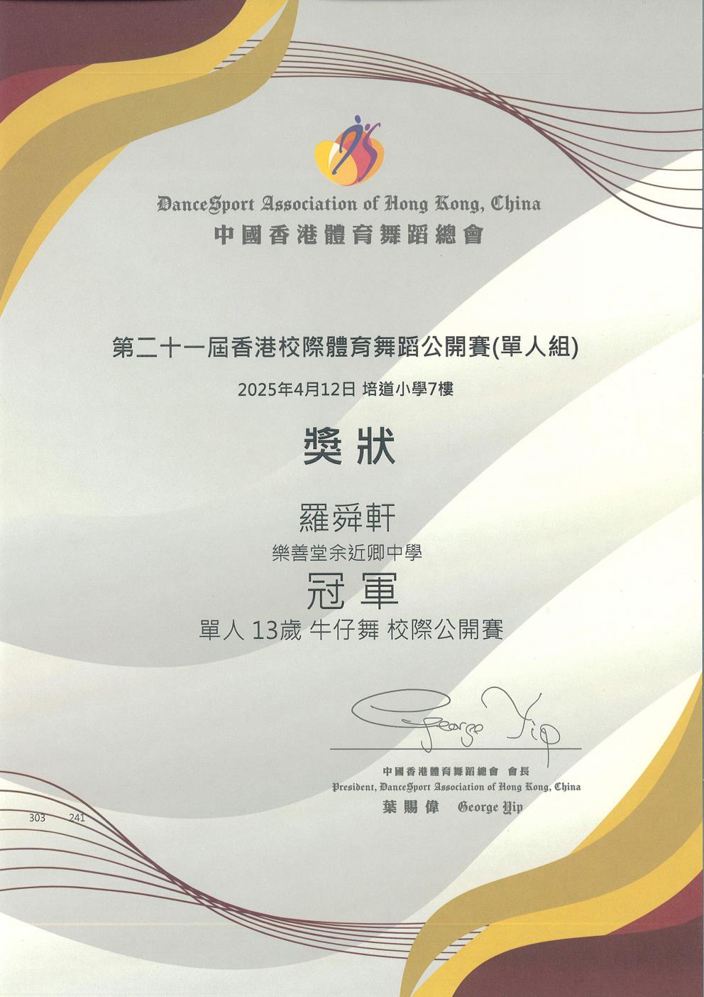 (DanceSport Association of Hong Kong, China)