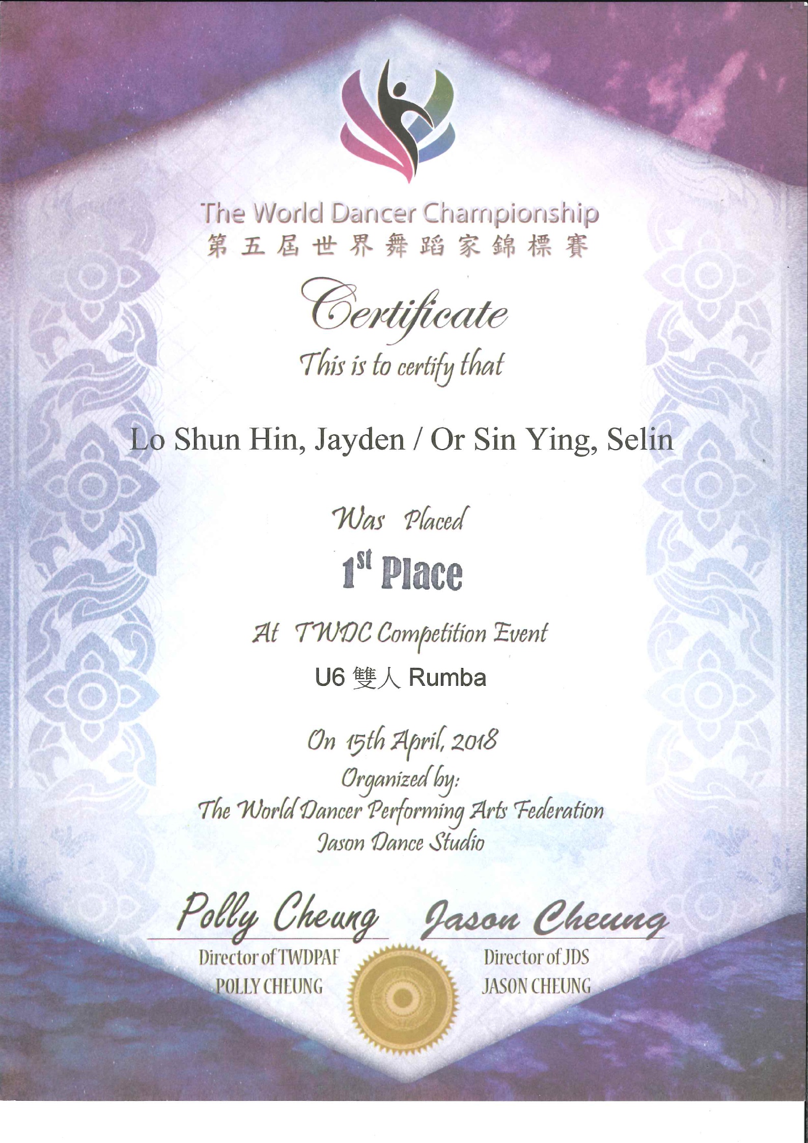 第五屆世界舞蹈家錦標賽 5TH THE WORLD DANCER CHAMPIONSHIP 2018