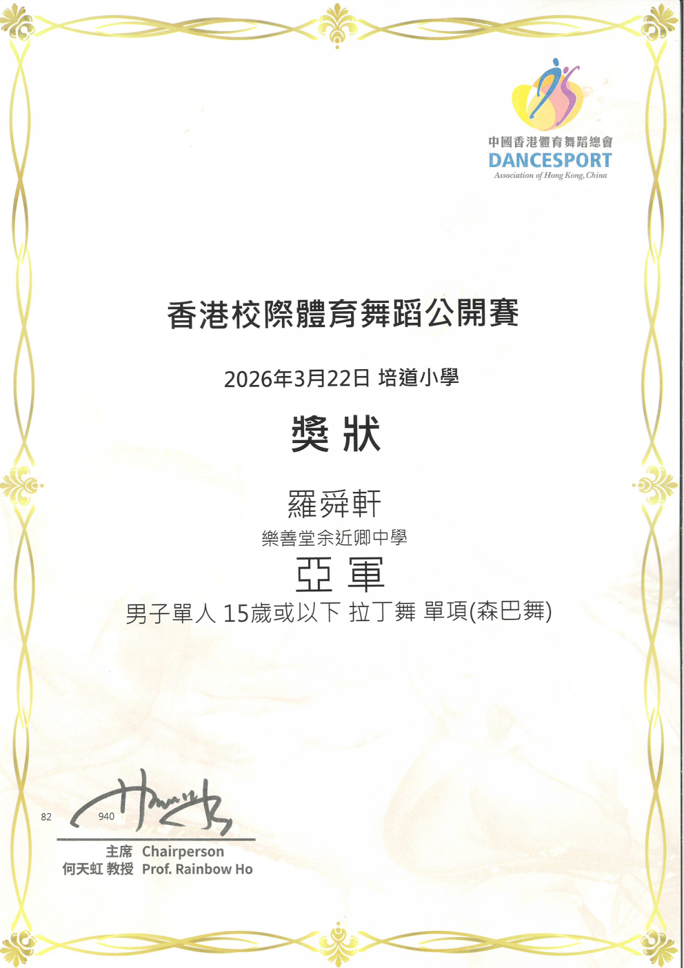 男子單人 15歲或以下 拉丁舞 單項(森巴舞)