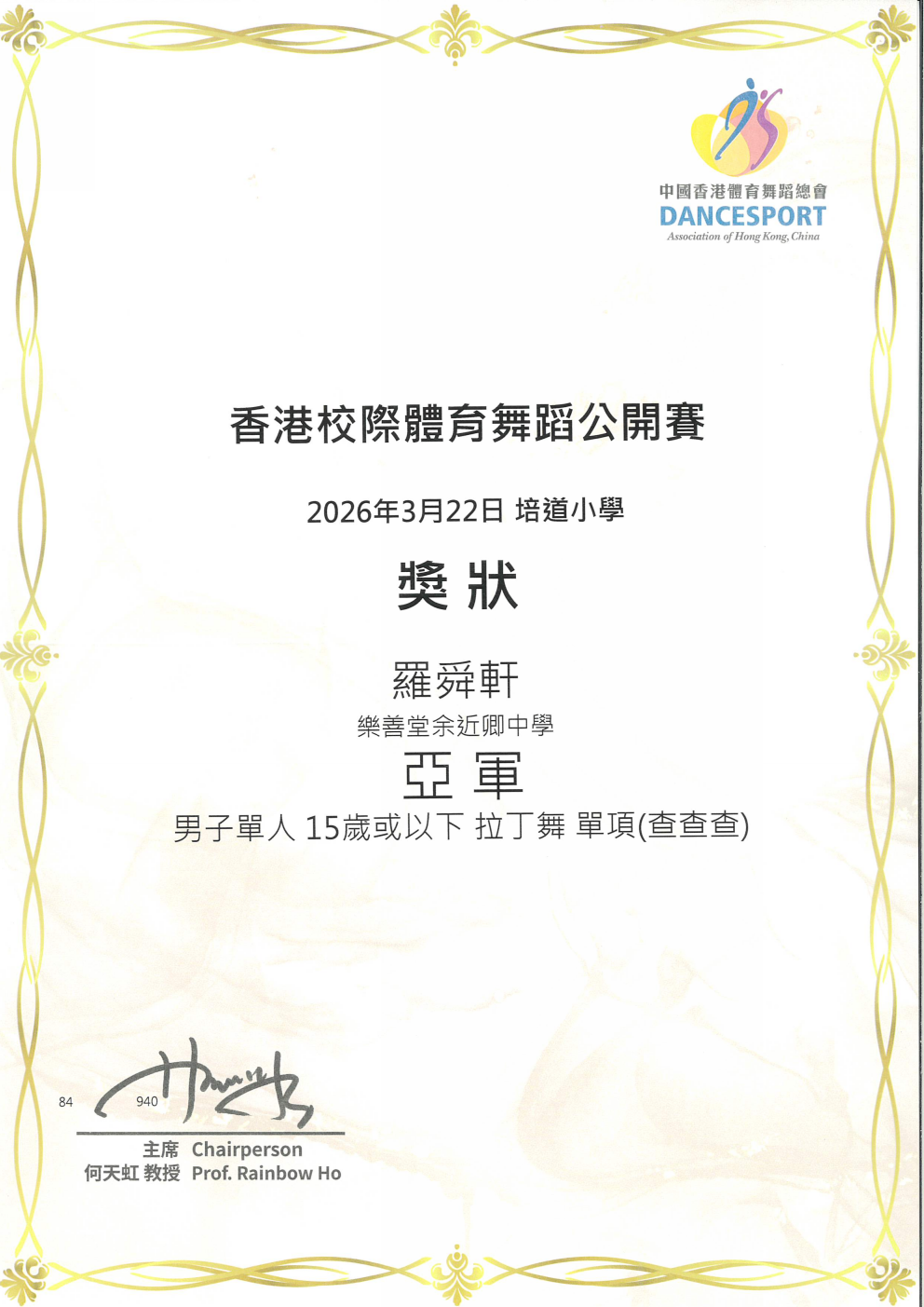 男子單人 15歲或以下 拉丁舞 單項(查查查)