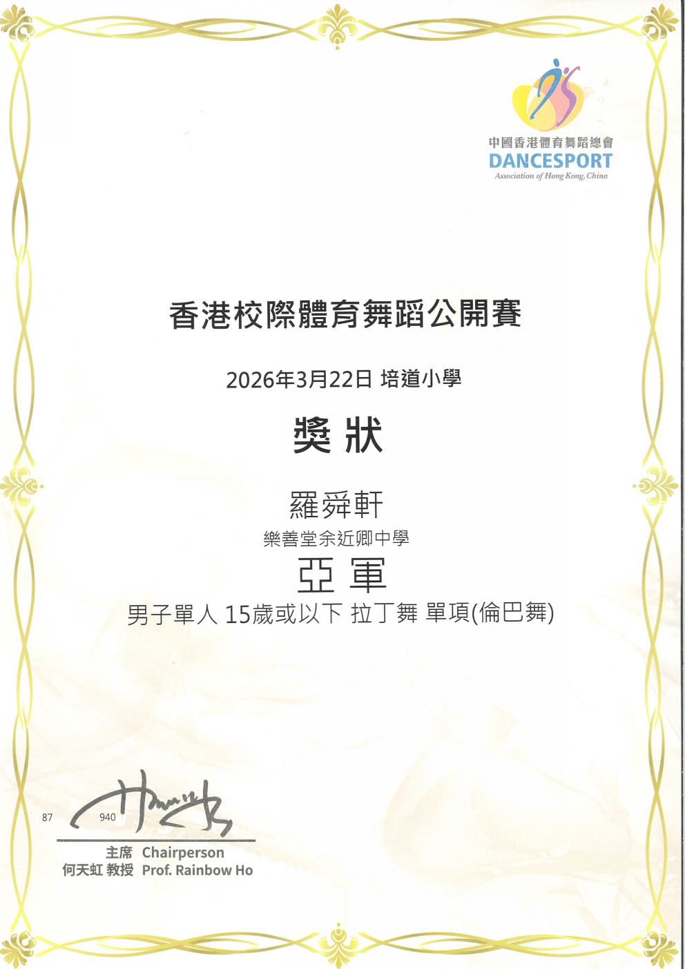 男子單人 15歲或以下 拉丁舞 單項(倫巴舞)