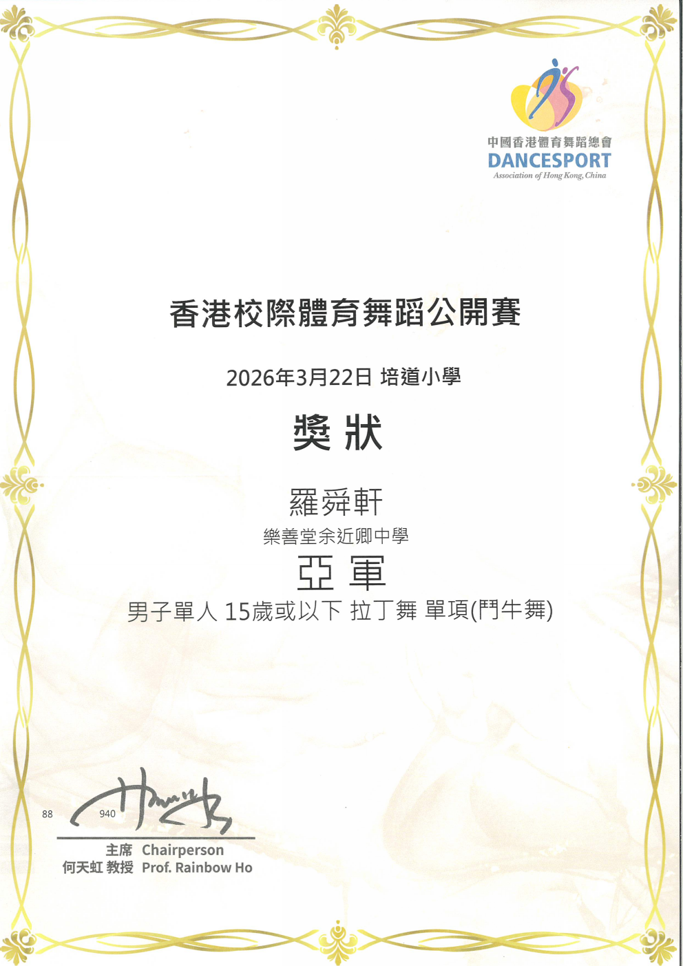 男子單人 15歲或以下 拉丁舞 單項(鬥牛舞)
