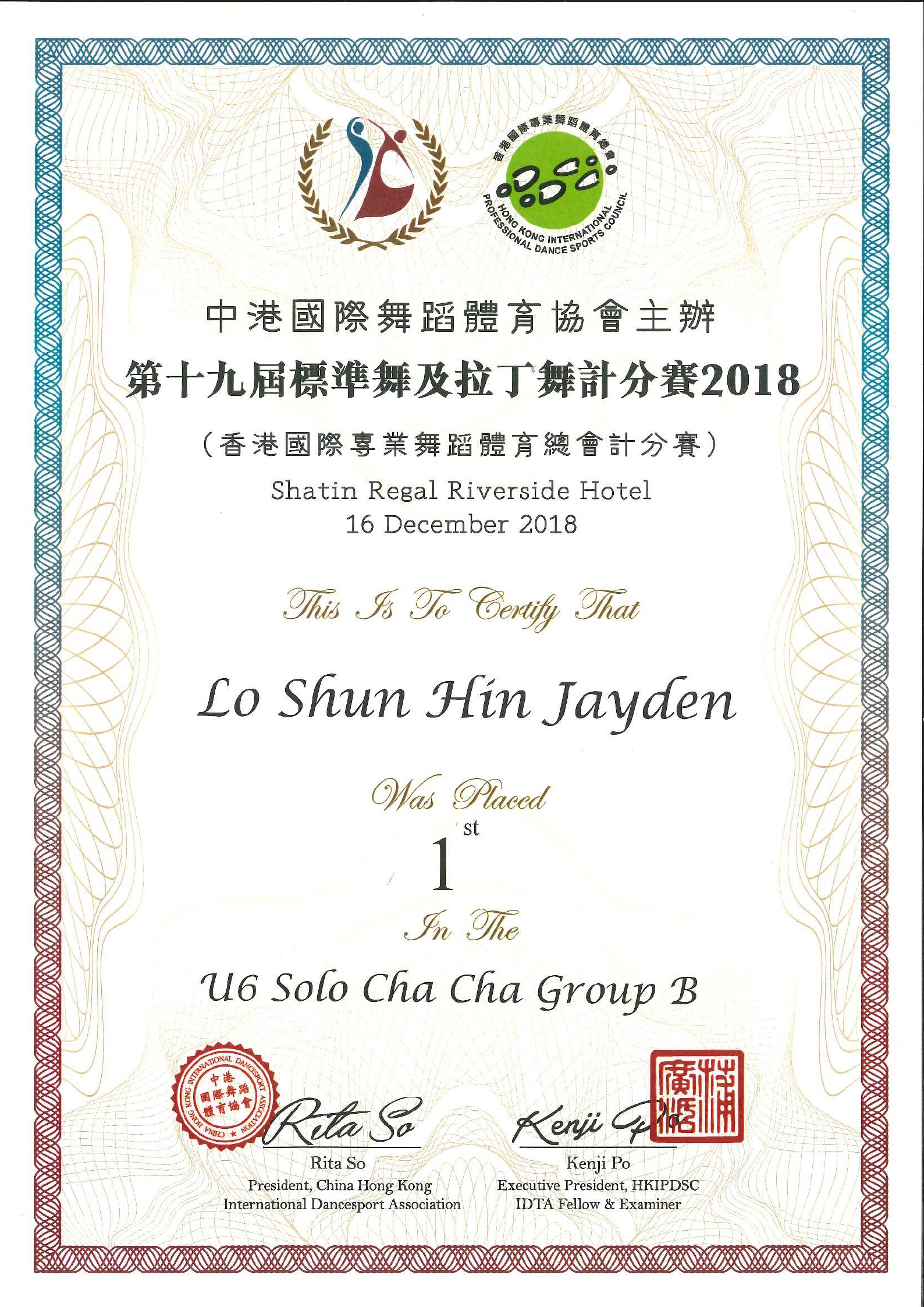 第十九屆標準舞及拉丁舞計分賽2018
